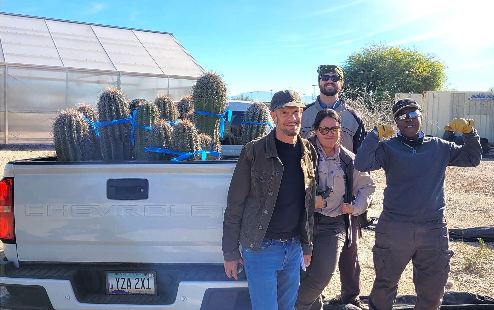 Each year, the Garden’s horticulture team carries out a saguaro succession planting, an essential effort to replace saguaros lost to storms, rot or other natural impacts. This work is guided by the annual saguaro inventory, led by the GIS manager and research department, which helps track plant health and identify new locations for planting. Thanks to this data-driven approach, 32 new saguaros were planted throughout the Garden this season.