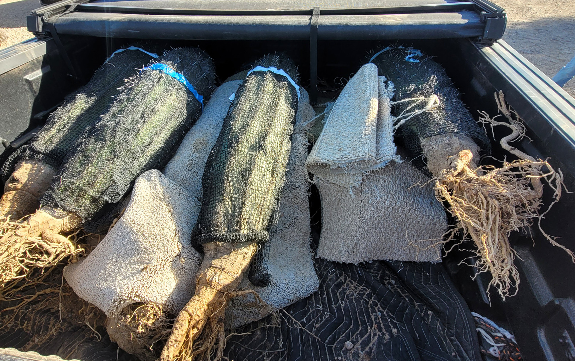 Careful techniques are key to success. Each saguaro is planted in the same orientation it previously grew to prevent sun scorch, placed beneath nurse plants like creosote, ambrosia and palo verde trees, and positioned on gentle slopes away from washes. Protective cages help shield them from hungry jackrabbits, bunnies and pack rats.