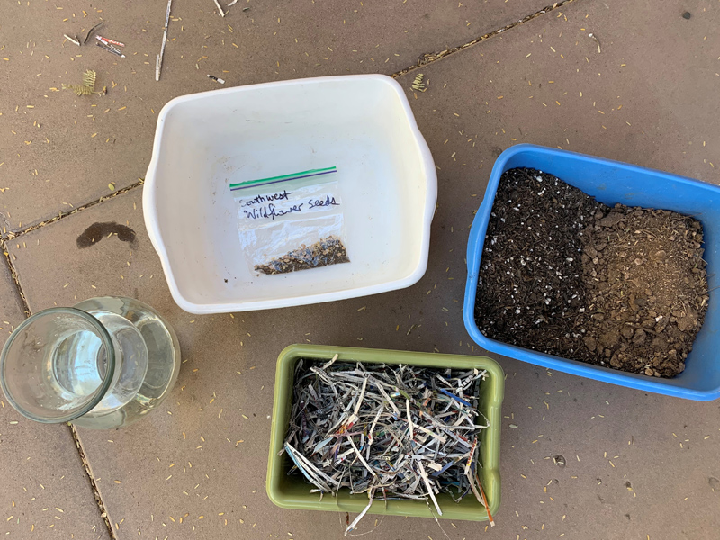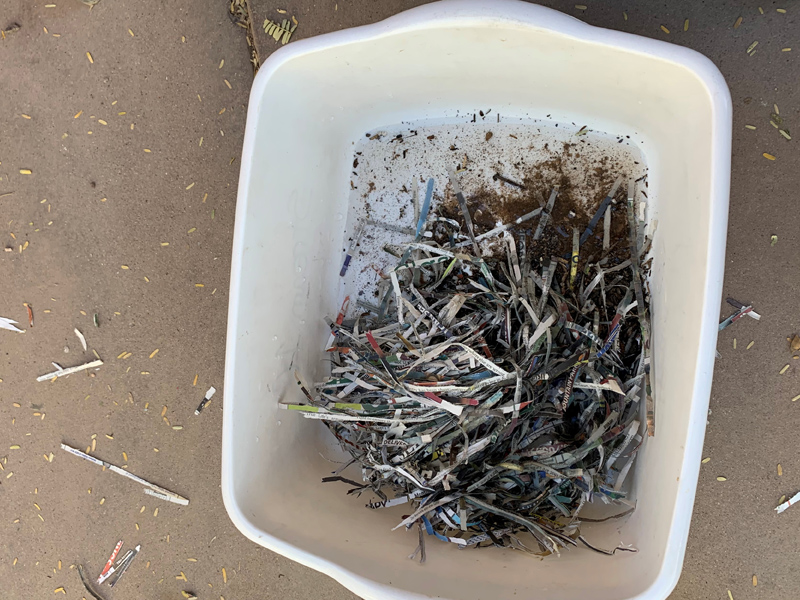 - Shred newspaper into fine bits.