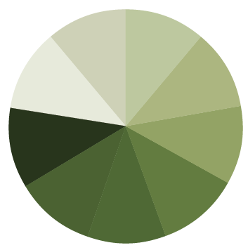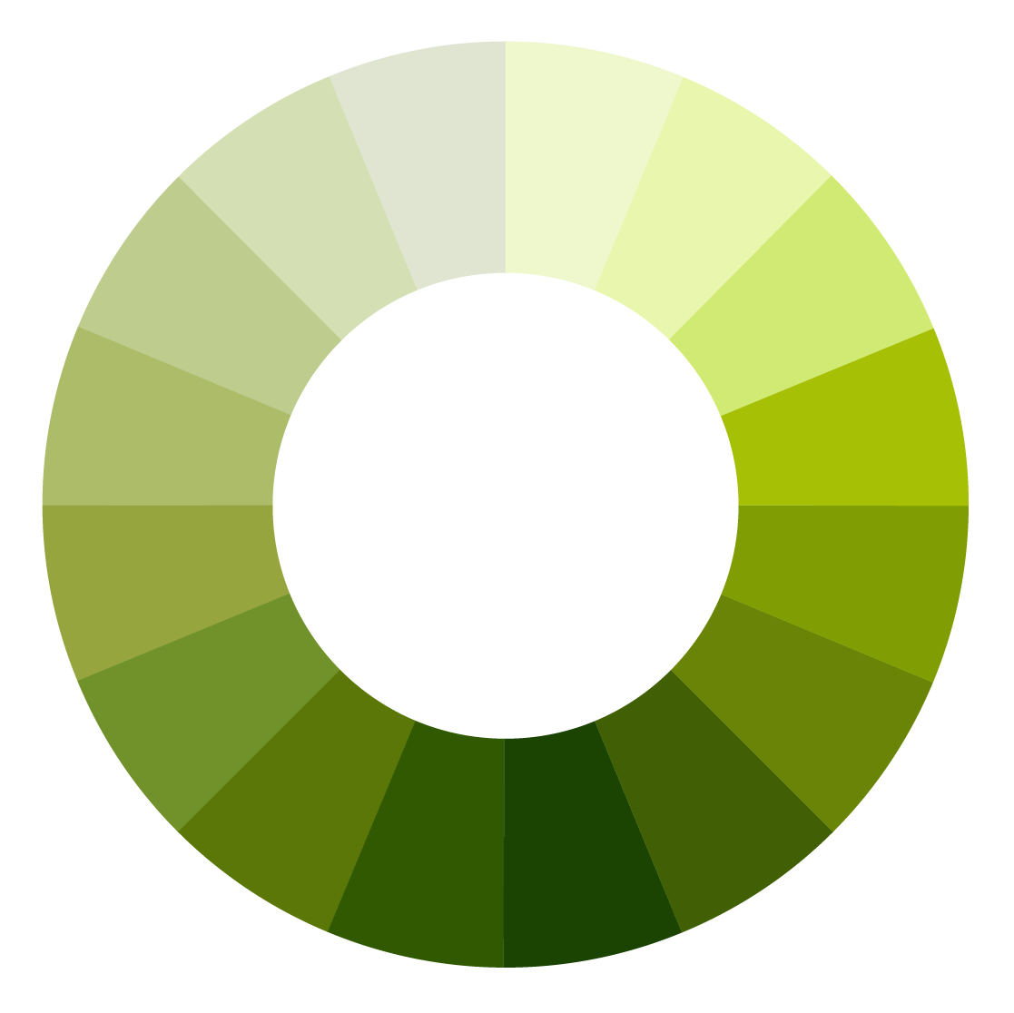- Open the ‘shades of green’ color wheel below on your phone, print it out or make your own using crayons, colored pencils or paint.