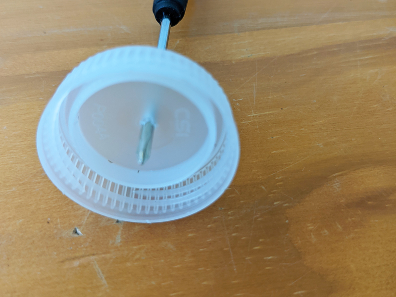 Next, remove the bottle cap and use a pointy object like a metal skewer or a thin screwdriver, to create a small hole in the bottle cap.