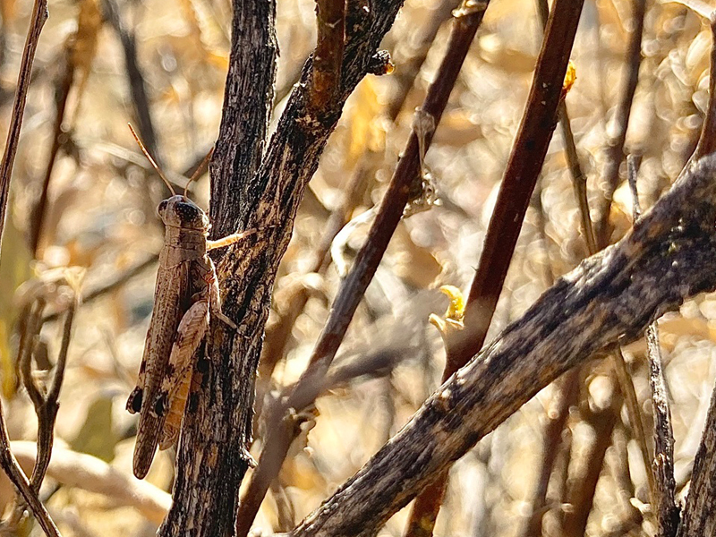 The creosote bush grasshopper (Ligurotettix coquillettii) are more heard than seen during monsoon season. You have to trick them by placing your hand underneath the stem to force them to reveal themselves. They are distinguished by their characteristic double-click chirrup. Great observation, seahale!