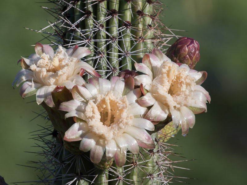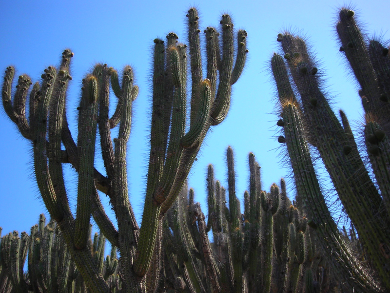 Closer to home in the southern Sonoran Desert, the copao’s look-alike cactus, Stenocereus thurberi, (aka organ pipe) commands the landscape. Its Spanish name is pitaya and they grow in a large range of habitats from southwestern Arizona, to 500-plus miles south to the Mexican state of Sinaloa and the southern Baja peninsula. They are one of only three cactus species in the world considered so special that a national preserve was established for their protection. In less arid regions of Sonora, pitayas can grow 30 to 40 feet high and develop hundreds of arms.