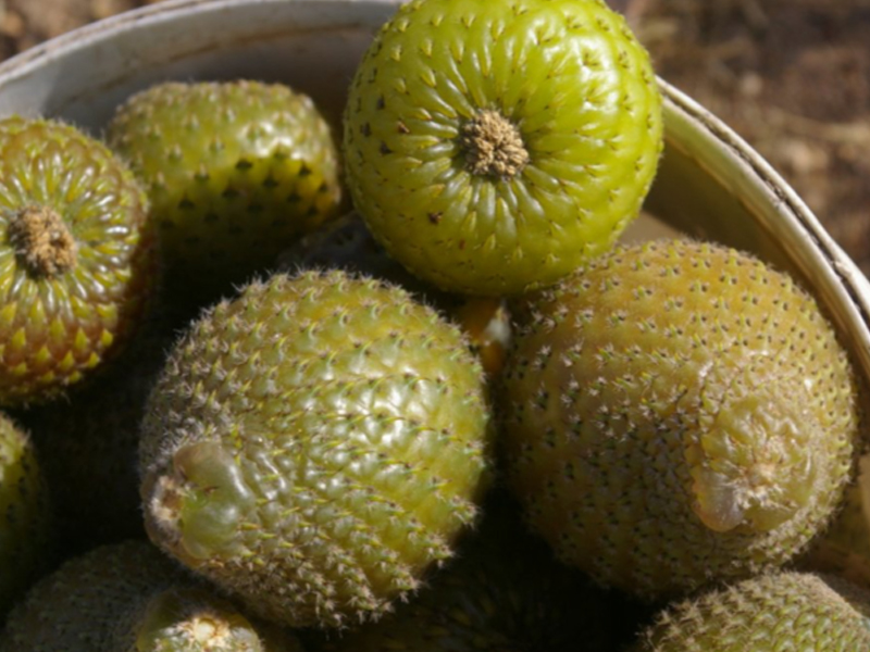 Most treasured by the Mayo, Yaqui and other native peoples of Sonora is the pitayo’s delicious fruit and the many social events of harvest season. July through September, local people remove fruits using a pole made from an agave or other plant stalk. About the size of golf balls, the fruits are filled with vibrant pink, sweet and juicy flesh. So delicious and in demand, most fruit is eaten fresh after harvesting.