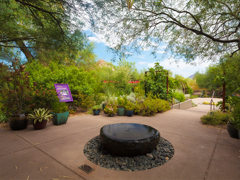 Nature sounds can have a profound restorative effect on our nerves. Studies completed at Stockholm University and Brighton and Sussex Medical School have found that listening to things like wind in the trees or running water calms the systems that trigger our “fight or flight” reflex— essentially the mechanisms that cause stress and anxiety. The fountain honoring John O. Theobald II on the Center for Desert Living Trail provides an opportunity to focus to the sight and sound of bubbling water to relax.