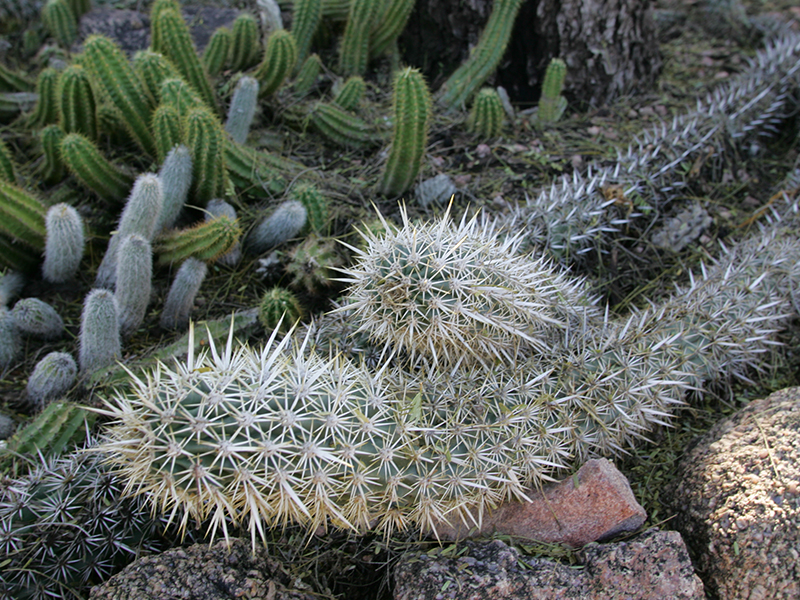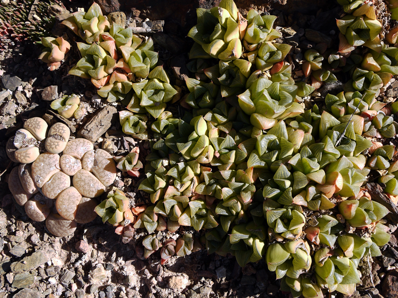 The cryptic living stones also known as lithops hide amidst the rocks and stones of the African deserts. Find them on many trails in the Garden.