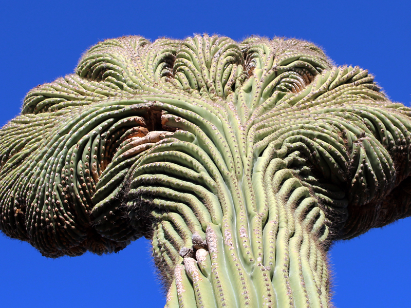 The giant mutated crested saguaro looms menacingly over the landscape of the Plants and People of the Sonoran Desert Loop Trail.