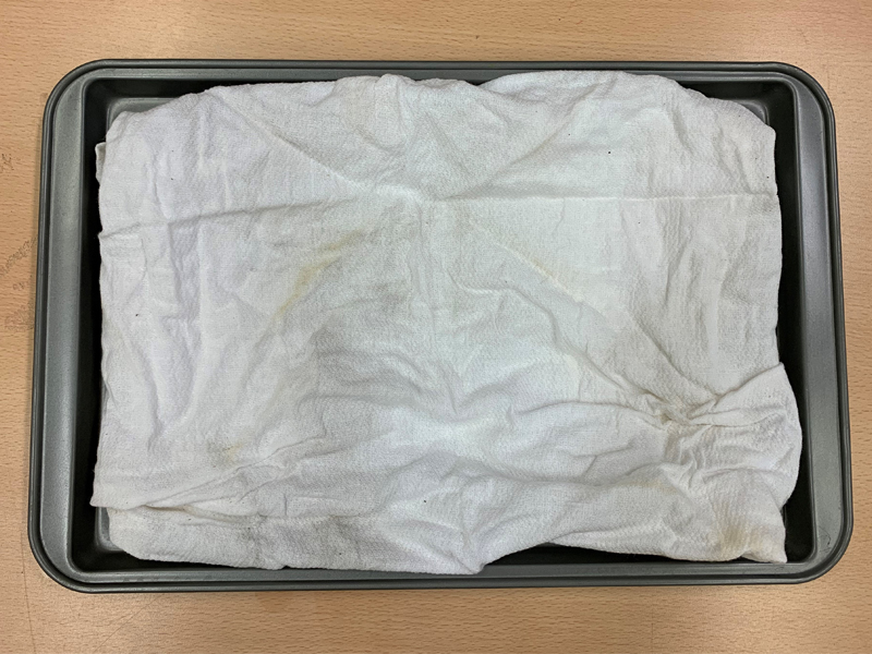 Cloth on a cookie sheet