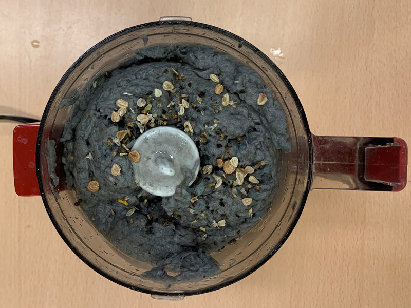 - Sprinkle the wildflower seeds into the pulp mixture.