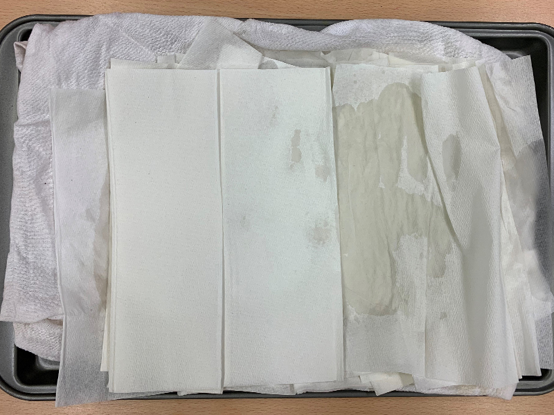 7. Lay down the absorbent rags or terry cloth fabric on top of a cookie sheet.