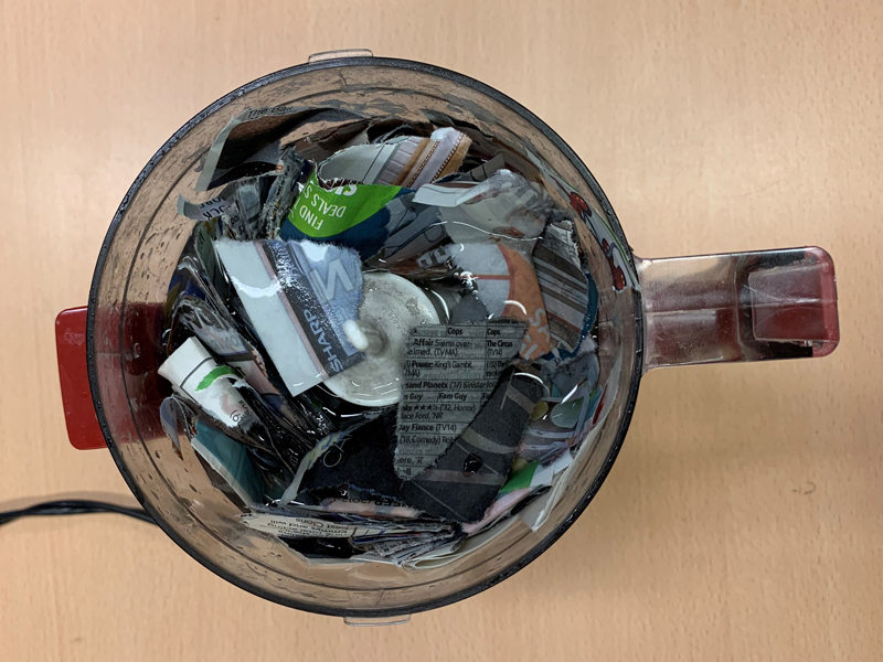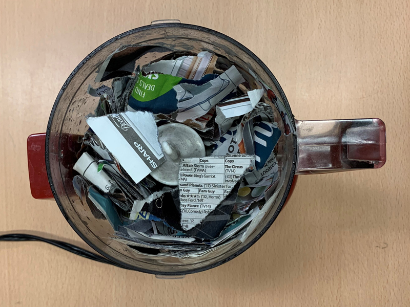 Paper pieces in a blender